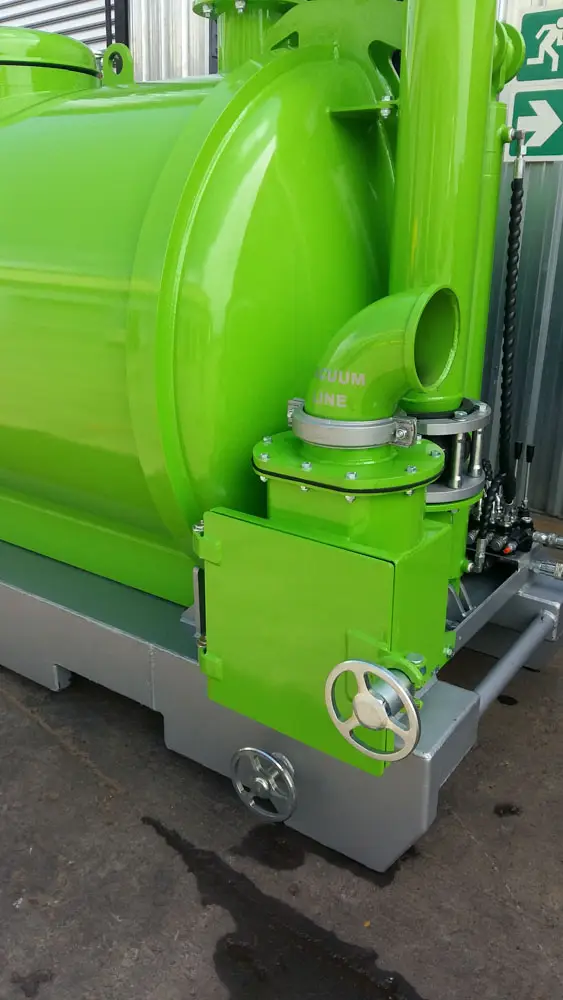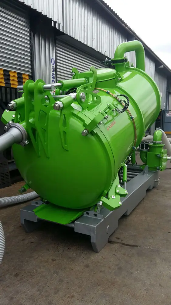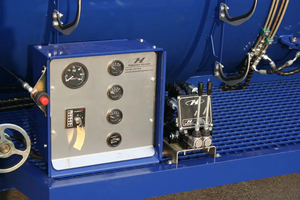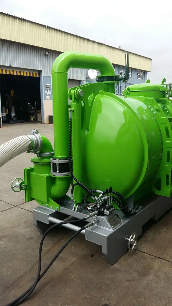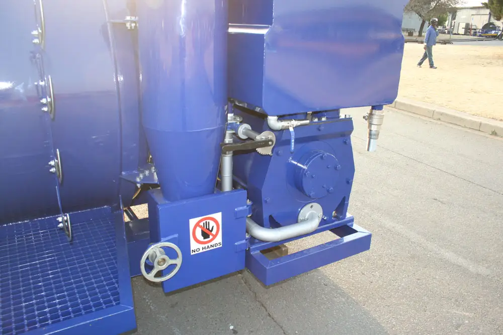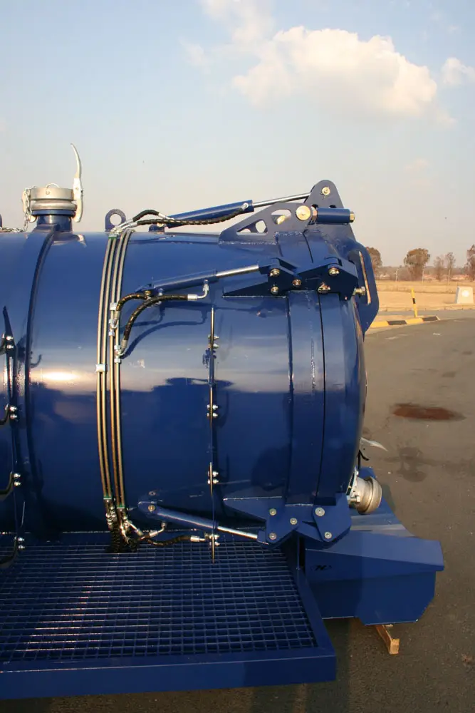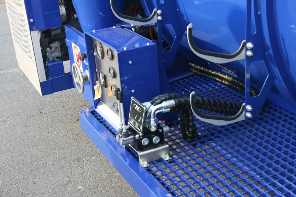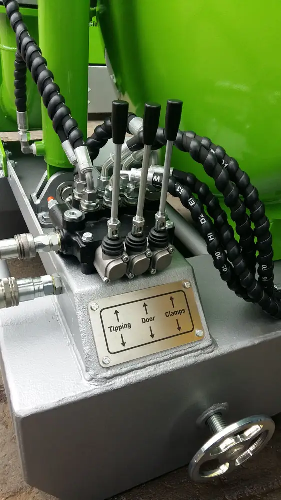 Clamps on the door has fail-safe mechanical lock that prevents accidental spillage while moving. The unit has an air-cooled turbo diesel engine driving the pump through a reduction gearbox.