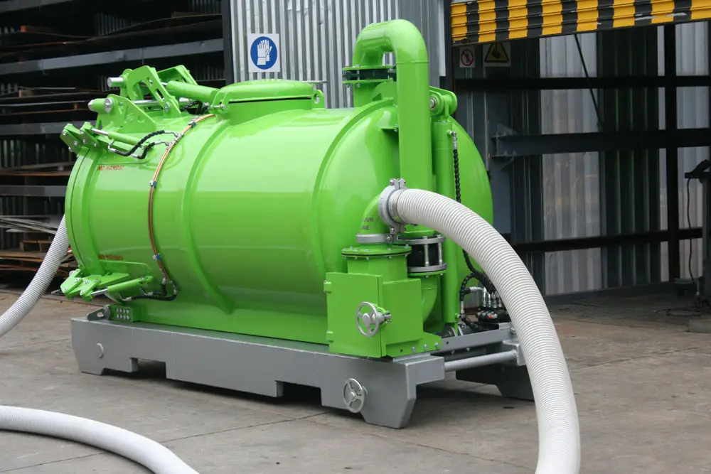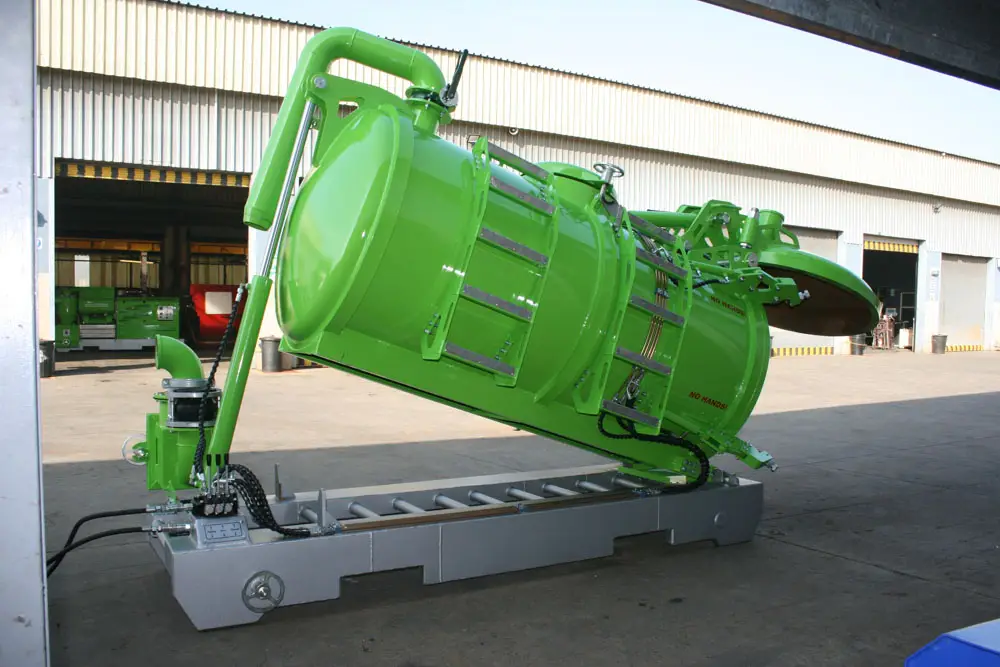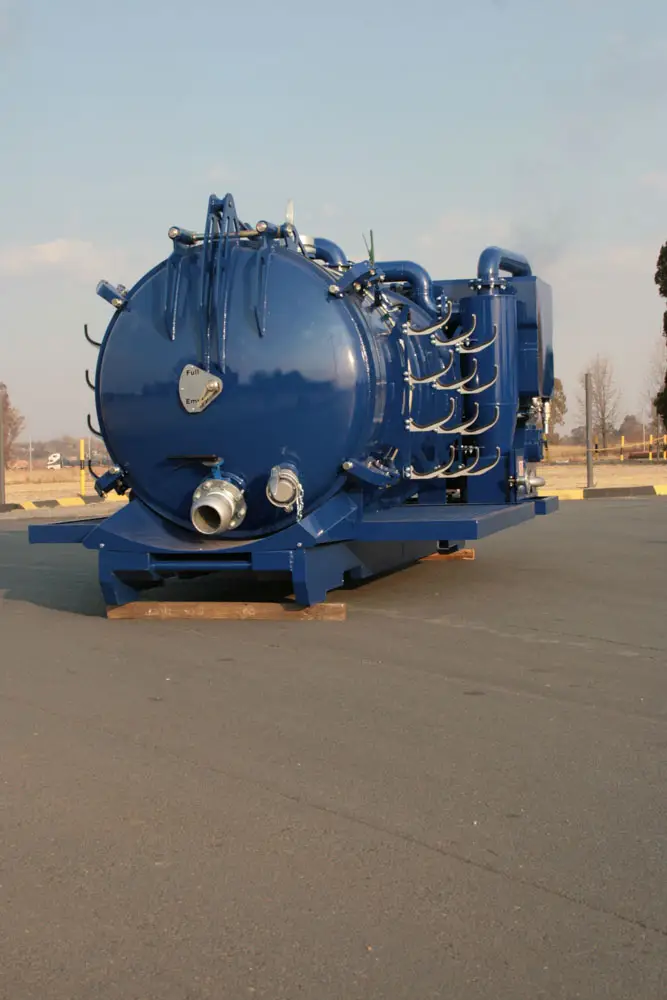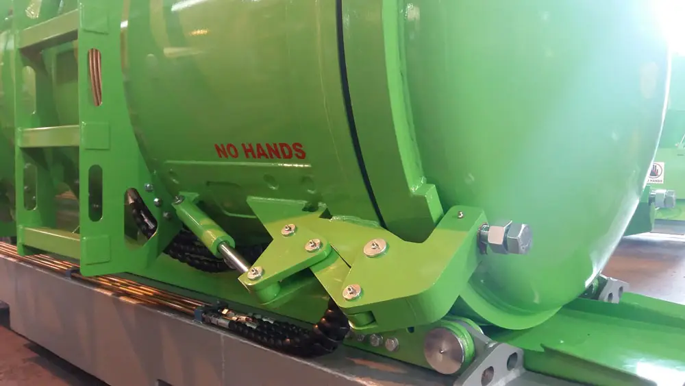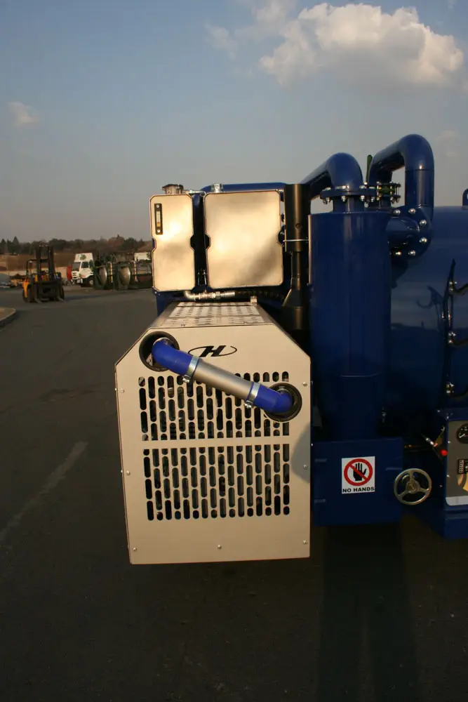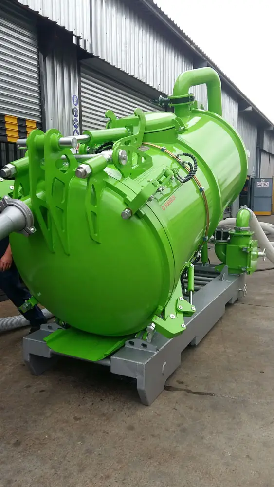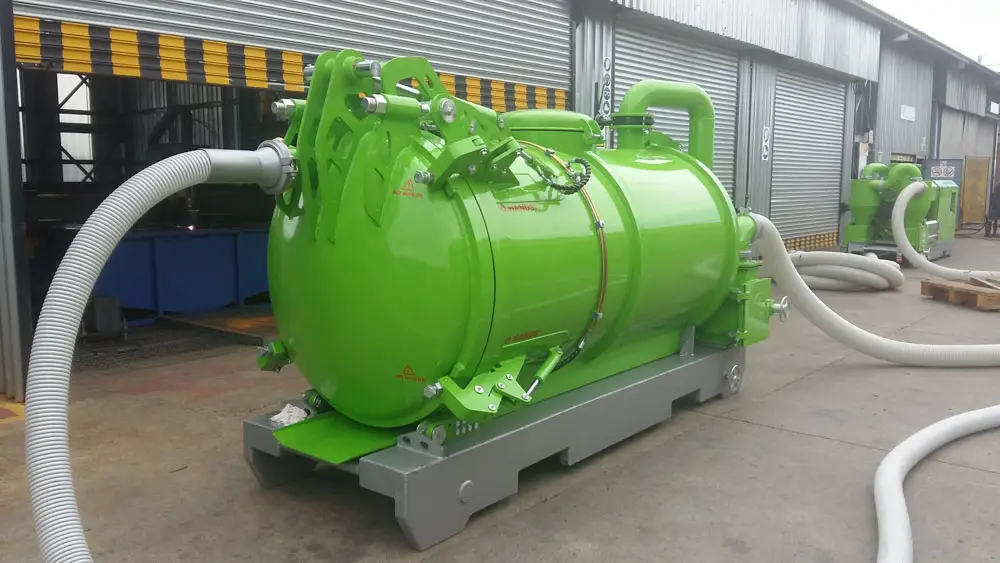 Clamps on the door has fail-safe mechanical lock that prevents accidental spillage while moving. The unit has an air-cooled turbo diesel engine driving the pump through a reduction gearbox.