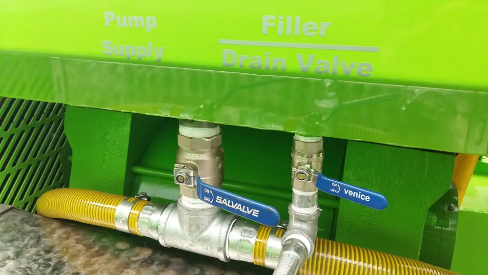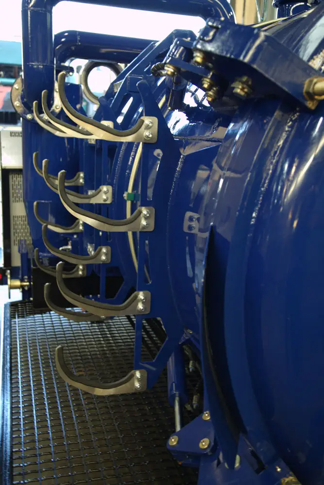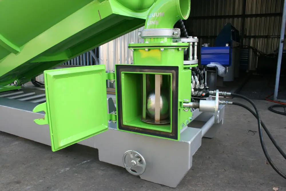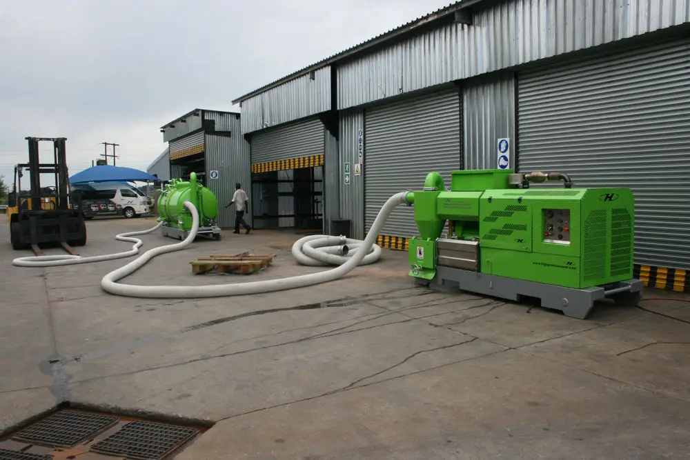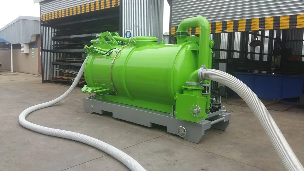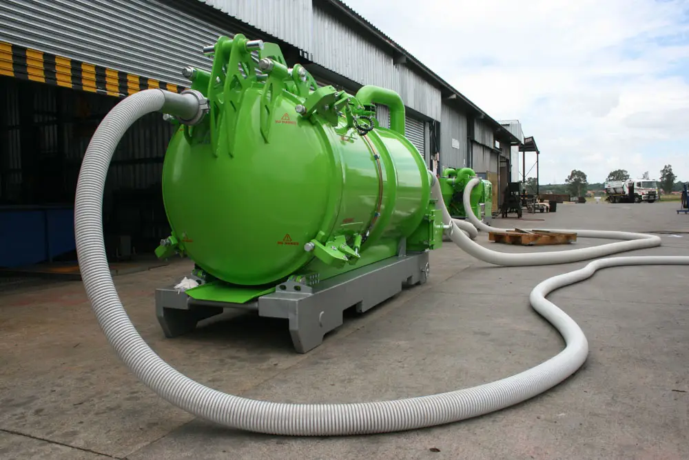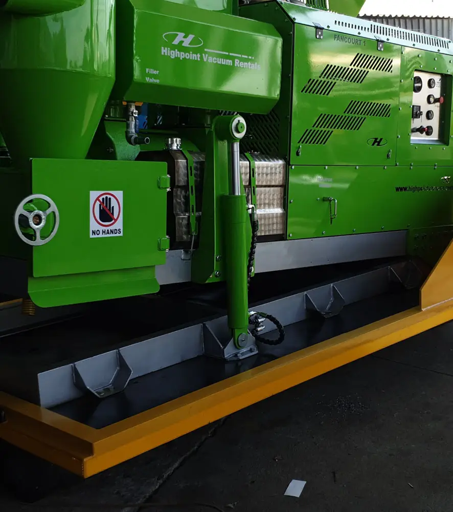 Clamps on the door has fail-safe mechanical lock that prevents accidental spillage while moving. The unit has an air-cooled turbo diesel engine driving the pump through a reduction gearbox.