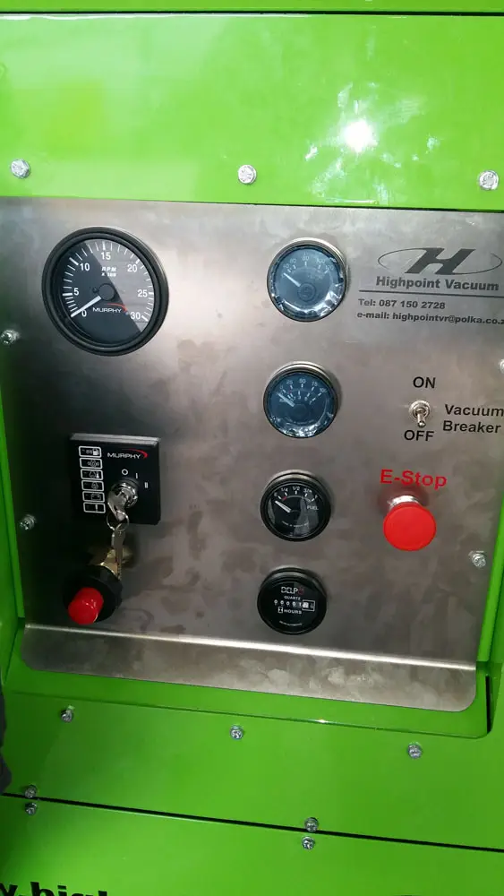 - Engine control panel with gauges and engine protection system.