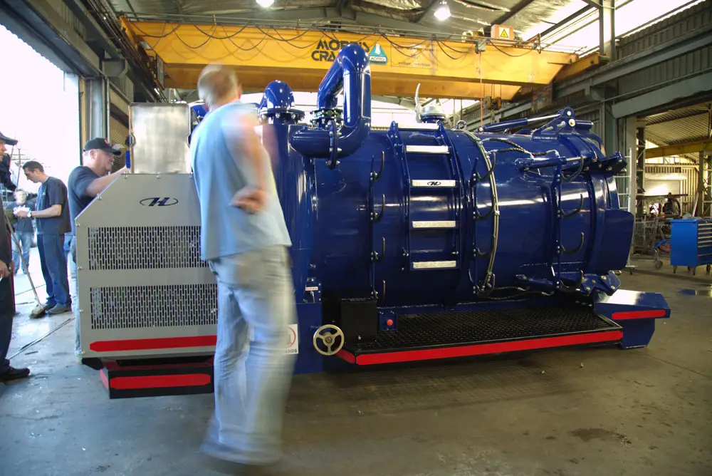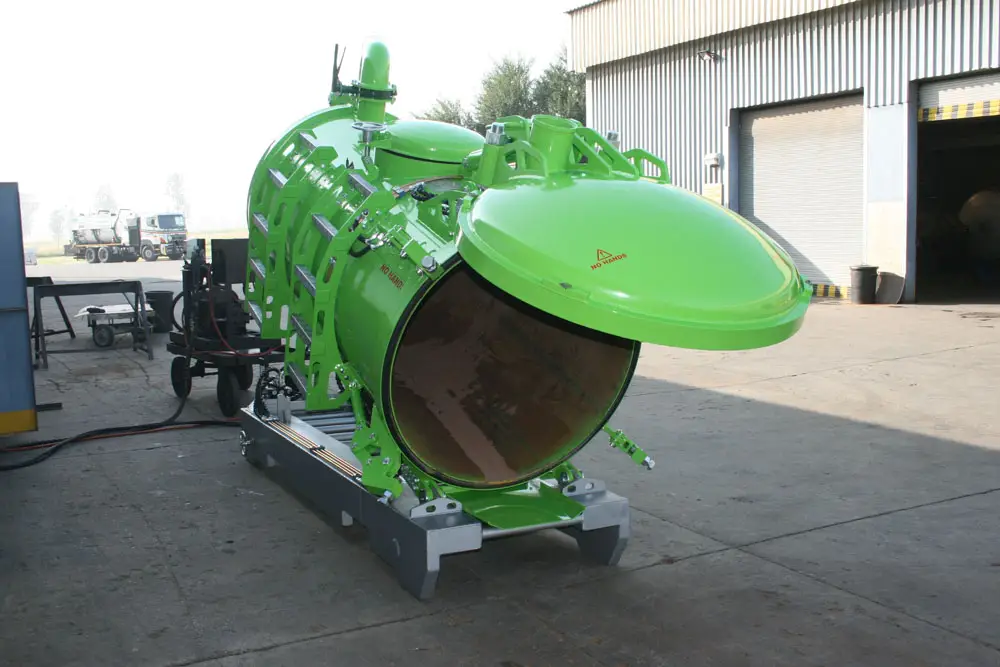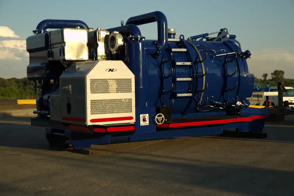 High mobility and versatility. Diesel powered and self-contained, this unit continues to impress in the trackless sector where set-up time is critical. Tank size is 3 cubic metres but can be increased depending on what platform is used, for safety to the operators the rear door opens fully with on board hydraulic system.
