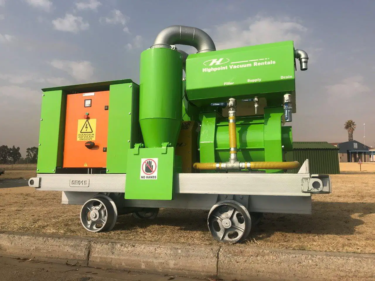 A compact 1200 cfm liquid ring unit with low power consumption. This unit is specifically built for mobility and areas with access restrictions. The unit features a very robust pump specifically designed for underground conditions.